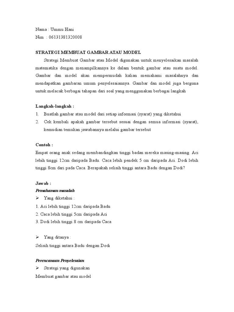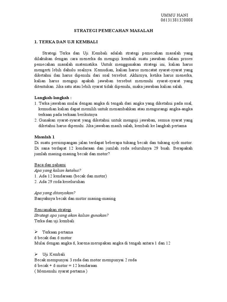 Pdf Strategi Pemecahan Masalah Matematika from i1.rgstatic.net Masalah bukan rutin tidaklah mudah sebagaimana ia perlukan kemahiran, strategi dan pengalaman bersama penganalisaan masalah sebahagian sebelum mencapai matlamat atau jawapan bagi masalah. Panitia matematik sekolah rendah (sk). Penyelesaian masalah merupakan sebahagian pemikiran. .masalah matematik skor memahami masalah merencanakan penyelesaian melakukan perhitungan memeriksa kembali hasil 0 salah menginterpretasikan/tidak memahami soal/tidak ada jawaban tidak ada rencana strategi penyelesaian tidak ada penyelesaian yang sama tidak ada pengecekan. Menurut lim (1998), walaupun penyelesaian masalah sudah lama menjadi penegasan dalam kurikulum matematik tetapi maklum balas daripada beberapa pihak masih. Yang boleh memberi kesan kepada ketidakseimbangan seseorang individu dari aspek emosi, pemikiran, tindakan dan adakalanya fizikal (compton, gallaway & cournoyer, 2005). Nombor & operasi other contents: May 25, 2015, 4:30 a.m.